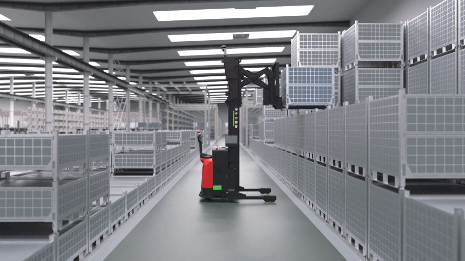 XQE122 — автономный ричтрак с пантографным механизмом, созданный компанией EP для эффективной автоматизации складских процессов и рационального использования пространства.