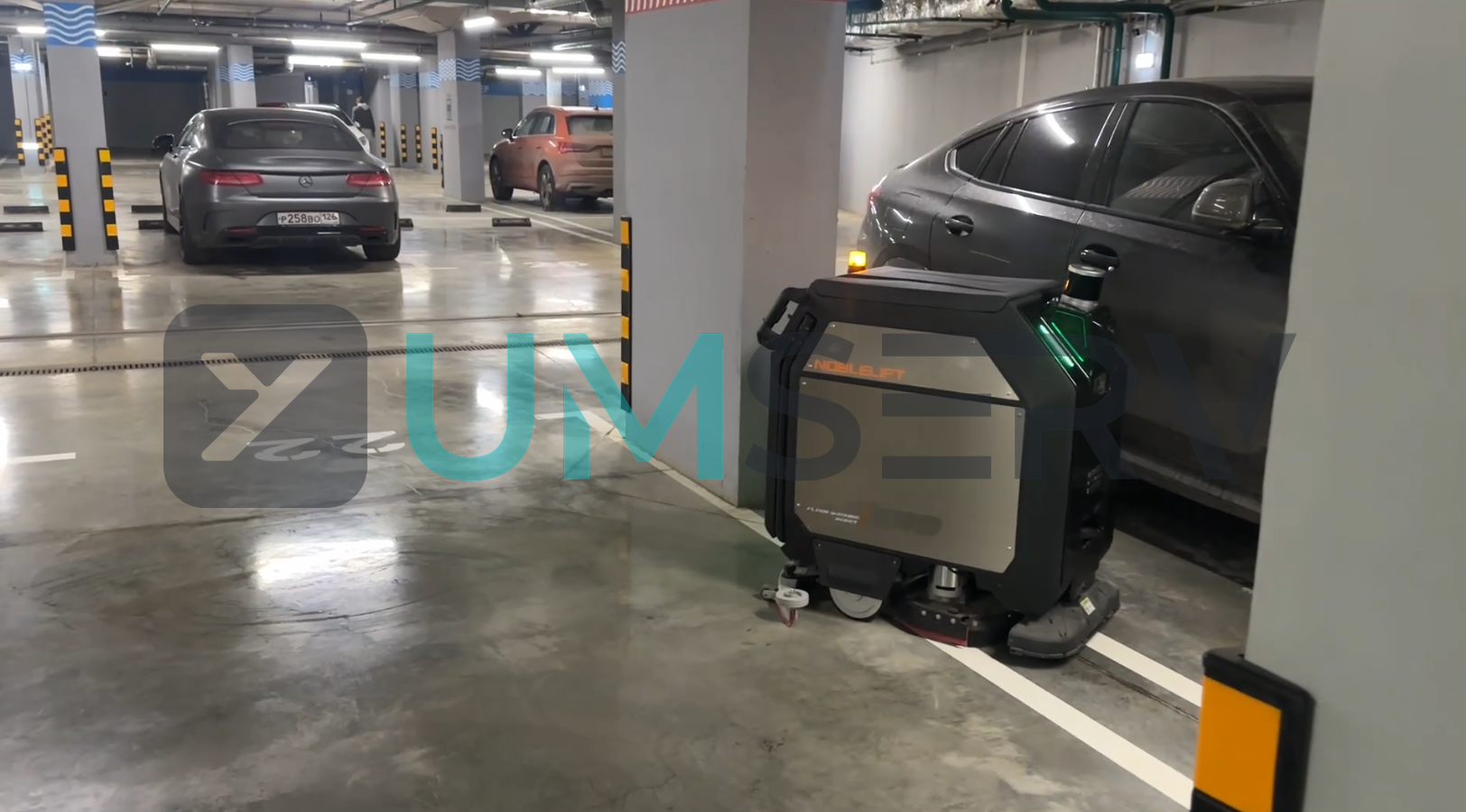 Для оптимизации процесса уборки был внедрён поломоечный робот Noblelift ANB510 - автономное решение для эффективной работы на больших пространствах. Робот выполняет регулярную влажную уборку паркинга по заданным маршрутам, обеспечивая равномерное покрытие всей площади и стабильный результат вне зависимости от загрузки персонала.